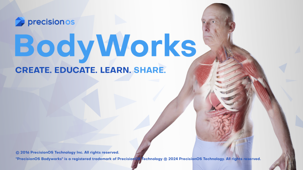 Vancouver, BC – December 2, 2024 – PrecisionOS® today announces the launch of BodyWorks™ Anatomy Studio, an innovative virtual reality app now available on the Meta Quest Store. BodyWorks empowers users—both medical and non-medical professionals—to create, teach, and share anatomy like never before.