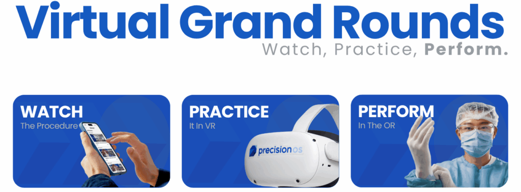 Experience a new standard in surgical education with Virtual Grand Rounds, only on the PrecisionOS mobile app. Virtual Rounds walks you through core surgical cases and then lets you practice them in immersive Virtual Reality.